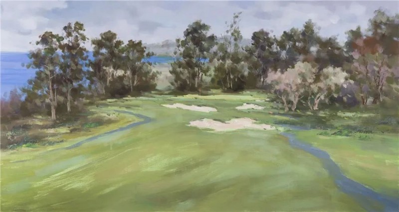 张少侠 美国加州圆石滩高尔夫球场 油画 80×150cm 2021年